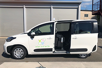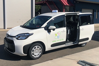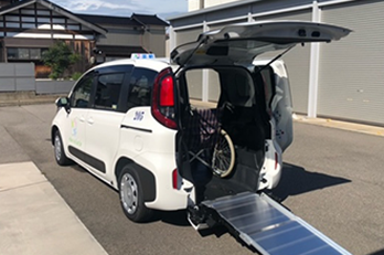 自宅玄関前から目的地玄関先までを車いすに乗ったまま、タクシーに乗車可能。